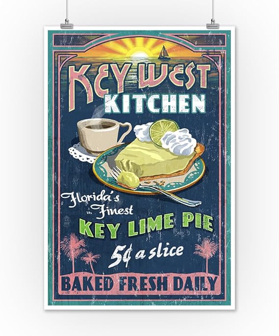 Amazon Com Key West Florida Key Lime Pie Vintage Sign 9x12 Wall Art Poster Digital Print Decoration Home Kitchen